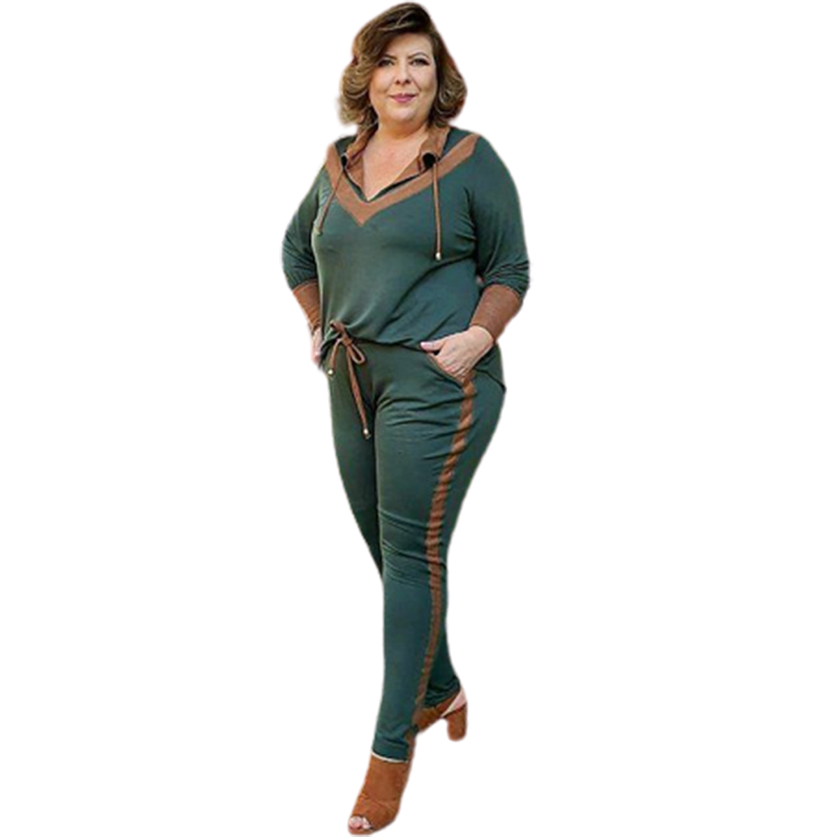 Diferencial de modelagem: A calça possui modelagem jogger, soltinha no quadril e ajustada na barra. O cós tem cadarço. O casaco é amplo.